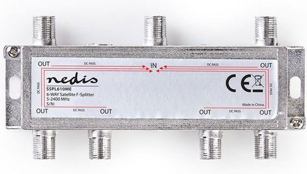 NEDIS SSPL610ME SATELLITE F-SPLITTER MAX 17 DB GAIN 5 - 2400 MHZ 6 OUTPUTS (PER.266973)