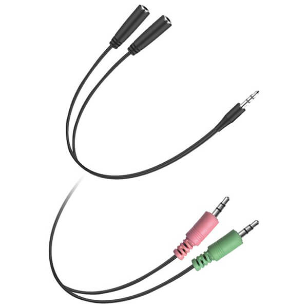 Σύνδεση ακουστικού και μικροφώνου: 2x 3.5mm jack (συμπεριλαμβάνεται αντάπτορας από 2x 3.5mm θηλυκό σε 1x 3.5mm αρσενικό)