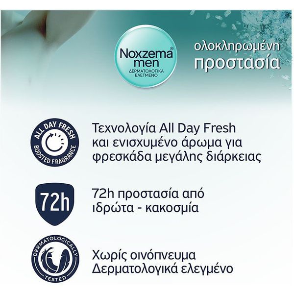 Το ανδρικό αποσμητικό spray Noxzema Men Fresh Intense προσφέρει αποτελεσματική προστασία από τον ιδρώτα και την κακοσμία, εξασφαλίζοντας αίσθηση φρεσκάδας που διαρκεί όλη την ημέρα. Με την προηγμένη τεχνολογία All Day Fresh Boosted Fragrance, ενισχύει το άρωμα και προσφέρει παρατεταμένη δροσιά, ιδανική για απαιτητική καθημερινότητα.