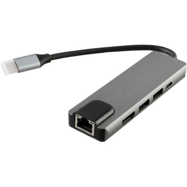 NSP N18 ΓΚΡΙ USB-C HUB 5 IN 1 (8340284) TYPE-C ΣΕ USB 3.0 ΜΕ RJ45 PD 2 USB 3.0 ΚΑΙ HDMI 4K