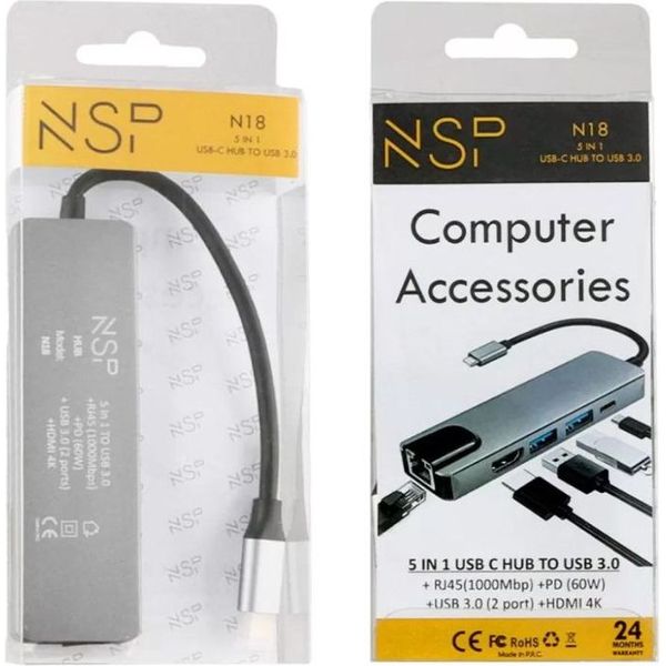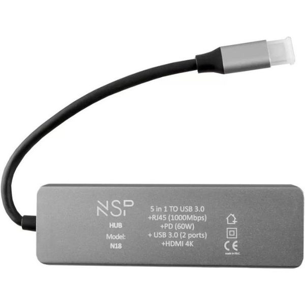 NSP N18 ΓΚΡΙ USB-C HUB 5 IN 1 (8340284) TYPE-C ΣΕ USB 3.0 ΜΕ RJ45 PD 2 USB 3.0 ΚΑΙ HDMI 4K (PER.249839)
