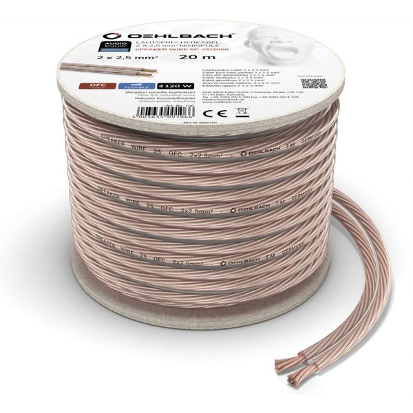 Το OEHLBACH SPEAKER WIRE SP-25 είναι ένα εξαιρετικής ποιότητας καλώδιο ηχείων, ιδανικό για την εξασφάλιση άριστης απόδοσης ήχου σε κάθε σύστημα ήχου. Με 2 x 2,5 mm² και μήκος 20 μέτρα, το καλώδιο αυτό προσφέρει εξαιρετική μετάδοση σήματος χωρίς απώλειες, προσφέροντας καθαρό και δυναμικό ήχο. Η διαφανής του κατασκευή προσφέρει μια αισθητική λύση που ταιριάζει με οποιοδήποτε περιβάλλον εγκατάστασης.
