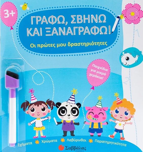 Στις σελίδες του μπορείς να παίζεις, να γράφεις, να ζωγραφίζεις και να σχεδιάζεις ξανά και ξανά με τον μαγικό μαρκαδόρο που σβήνει!