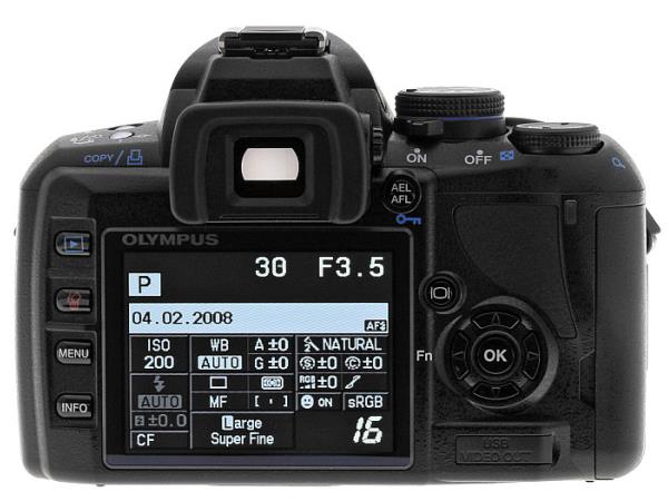 • Ανάλυση: Ενεργά pixels 10 Megapixels, Πλήρης ανάλυση: 10.8 Megapixels. • Διάταξη φίλτρου: Φίλτρο βασικών χρωμάτων (RGB). • Τύπος: 4/3 ''. • Αισθητήρας: Live MOS. • Φίλτρο: LPF Σταθερού τύπου, φίλτρο αποκοπής IR υβριδικού τύπου, Φίλτρο προστασίας σκόνης, Φίλτρο Υπερηχητικών Κυμάτων. • Οθόνη: 230000 pixels, τύπου LCD HyperCrystal II, 6.9 cm / 2.7 ''. • Σκόπευτρο: Μονοοπτικό σκόπευτρο επιπέδου ματιου, Οπτικό πεδίο περίπου 95 %, Μεγέθυνση περίπου 0.92 x, προαπεικόνιση βάθους πεδίου, Απομάκρυνση ίριδας 14 mm, Διοπτρική ρύθμιση -3.0 - +1.0 διοπτρία / ενσωματωμένου τύπου, Παρέχεται το κάλυμμα προσοφθαλμίου EP-4. • Σύστημα εστίασης: Μέθοδος εντοπισμού διαφοράς φάσης TTL, Σύστημα ανίχνευσης αντίθεσης, Περιοχές εστίασης: 3 σημεία / Αυτόματη και χειροκίνητη επιλογή. • Φωτομέτρηση: TTL με ανοικτό διάφραγμα, Σύστημα πολυζωνικού αισθητήρα, Εμβέλεια ανίχνευσης 1 - 20 (50mm, 1:2, ISO 100). • Προγράμματα σκηνών: 18 προγραμμάτα.Ευαισθησία: Αυτόματη ISO 100 - 1600, Χειροκίνητη ISO 100 - 1600. • Κλείστρο: Εστιακού επιπέδου ηλεκτρονικά ελεγχόμενο. • Ταχύτητες κλείστρου: Εύρος ταχυτήτων 1/4000-60 s, Ταχύτητα κλείστρου P, Ps 1/4000-60 s. • Εσωτερικό φλας: Ναι, αυτόματο με δυνατότητα απενεργοποίησης, μείωση του κοκκινίσματος των ματιών και δυνατότητα χρήσης εξωτερικού. • Εγγραφή στατικής εικόνας: EXIF 2.2, PIM III, DPOF, DCF. • Φορμά εγγραφής: RAW, RAW & JPEG - Παράλληλη εγγραφή, JPEG. • Διασύνδεση: Διπλή υποδοχή για κάρτες CompactFlash (Type I και II), Microdrive και xD picture card, Συνδυασμένη έξοδος AV & USB (επιλογή NTSC ή PAL), Υπέρυθρες. • Γλώσσες μηχανής: Αγγλικά, Γερμανικά, Γαλλικά, Ισπανικά, Ιταλικά, Ρωσικά, Τσέχικα, Ολλανδικά, Δανέζικα, Πολωνικά. • Γλώσσες του μενού από download: Μία επιπρόσθετη γλώσσα απο 15 επιπλέον γλώσσες με κατέβασμα απο το internet. • Βάρος: 380 g (σώμα μόνο). • Διαστάσεις: 129, 5 x 91 x 53 mm (χωρίς τις προεξοχές). • Συσκευασία: BC-1 (Καπάκι σώματος), BLS-1 (Μπαταρία λιθίου για τη σειρά E-400), BCS-1 (Φορτιστής μπαταρίας για την BLS-1), EP-4 (Κάλυμμα προσοφθαλμίου για τη σειρά Ε-400 και τη σειρά Ε-500 ), Λουρί ώμου, CB-USB6 (Καλώδιο USB), CB-VC2 (Καλώδιο video για την Ε-330, τη σειρά Ε-400 και τη σειρά Ε-500 ), OLYMPUS Master 2 (CD-ROM λογισμικού), OLYMPUS Studio 2 Trial (Λήψη Λογισμικού), Οδηγίες λειτουργίας, Κάρτα εγγύησης. • Εγγύηση: 2 χρόνια. DOA 7 ημερών