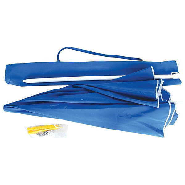 Ομπρέλα παραλίας με διάμετρο 2 μέτρα. Είναι σπαστή με ιστό από σίδηρο, διαμέτρου 28mm και πάχους 6mm, ενώ στηρίζεται σε 10 ακτίνες από Fiberglass πάχους 6mm. Διαθέτει αεραγωγό για καλύτερη ροή του αέρα και μπορεί να μεταφερθεί εύκολα σε τσάντα.