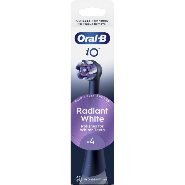 Οι κεφαλές Oral-B iO Radiant White σχεδιάστηκαν για να αφαιρούν αποτελεσματικά τους επιφανειακούς λεκέδες και να προσφέρουν πιο λευκή εμφάνιση στα δόντια. Η μοναδική στρογγυλή κεφαλή συνδυάζεται με μικροδονήσεις της σειράς iO και εξαρτήματα «γυαλίσματος», προσφέροντας επαγγελματικό καθαρισμό σε καθημερινή βάση. Ταιριάζουν αποκλειστικά με τις ηλεκτρικές οδοντόβουρτσες Oral-B iO και προτείνονται για αντικατάσταση κάθε τρεις μήνες για βέλτιστα αποτελέσματα.