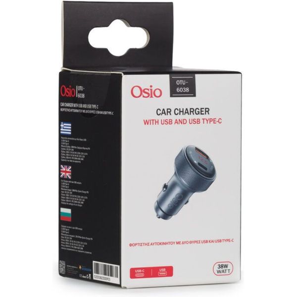 Ο ταχυφορτιστής αυτοκινήτου OTU-6038 είναι η ιδανική λύση για γρήγορη και αξιόπιστη φόρτιση συσκευών κατά τη διάρκεια της οδήγησης. Διαθέτει δύο θύρες USB, μία Type-A και μία Type-C, προσφέροντας μέγιστη ευελιξία για να φορτίζετε ταυτόχρονα δύο συσκευές. Η μέγιστη ισχύς φτάνει τα 38W, επιτρέποντας γρήγορη φόρτιση με τεχνολογία Power Delivery (PD). Όταν χρησιμοποιούνται ταυτόχρονα, ο φορτιστής προσφέρει συνδυασμένη ισχύ 20W μέσω της θύρας USB-C και 18W μέσω της θύρας USB-A. Αυτό σημαίνει ότι μπορείτε να φορτίζετε το smartphone και το tablet σας ταυτόχρονα, χωρίς να θυσιάζετε ταχύτητα ή απόδοση. Ο φορτιστής λειτουργεί με είσοδο DC12V-24V, καθιστώντας τον συμβατό με όλα τα οχήματα. Επίσης, διαθέτει ενσωματωμένη οθόνη που εμφανίζει την τάση του φορτιστή, δίνοντάς σας τη δυνατότητα να παρακολουθείτε την απόδοση του φορτίου. Ο κομψός ανθρακί σχεδιασμός του το καθιστά διακριτικό και μοντέρνο, ταιριάζοντας τέλεια με το εσωτερικό κάθε αυτοκινήτου. - Φορτιστής αυτοκινήτου με 2 θύρες USB