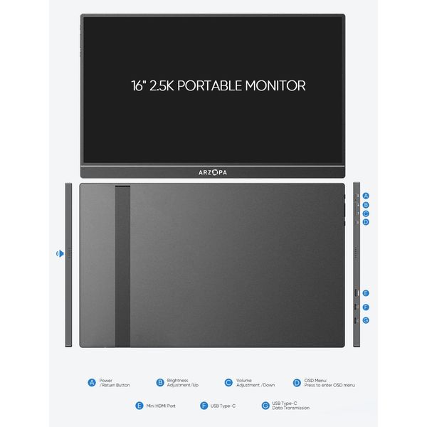 Arzopa 2.5K 16" Portable Monitor Black Z1RC