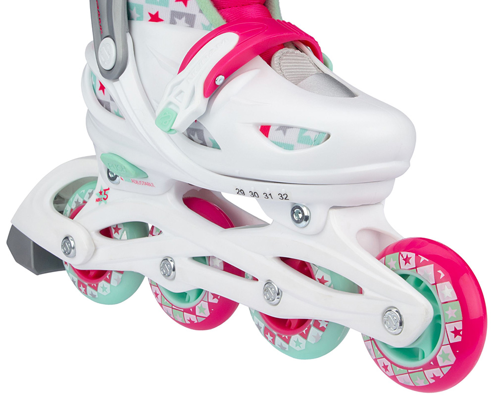 Ρύθμιση μεγέθους με ένα κουμπί!: Απλά πιέζοντας ένα κουμπί στο πίσω μέρος, το μέγεθος της μπότας ρυθμίζεται σε 4 διαφορετικά μεγέθη, έτσι ώστε τα πατίνια σας να σας συντροφεύουν για χρόνια. Οι διαθέσιμες επιλογές είναι 25-28, 29-32, 33-36 και 37-40.