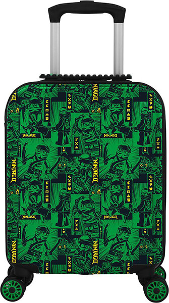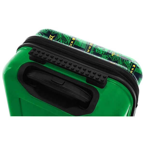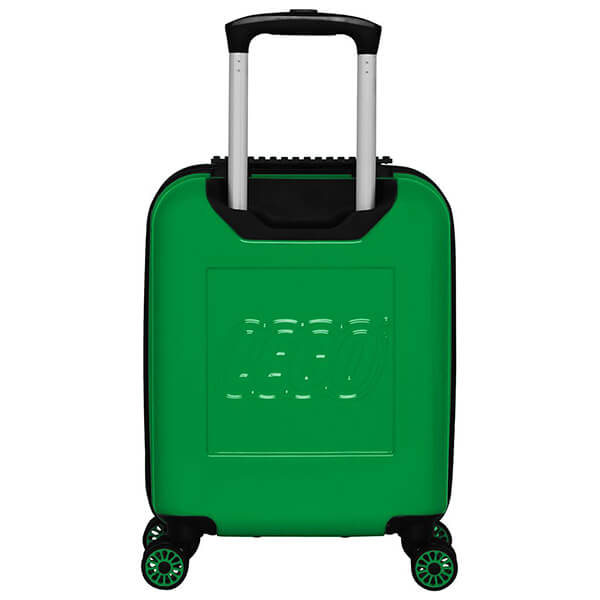Εμβληματικό σχέδιο LEGO με το λογότυπο LEGO στο χρώμα της βαλίτσας.
