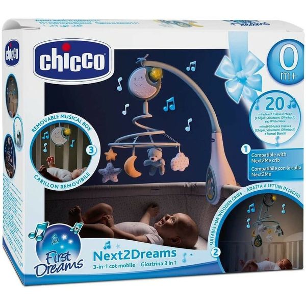 Σχεδιασμένο από την Chicco για να προσαρμόζει στα λίκνα της σειράς Next2Me, αλλά που μπορεί να εγκατασταθεί γρήγορα και στις περισσότερες ξύλινες κούνιες, το Παιχνίδι Κούνιας Next2Dreams είναι ένα μοντέρνο μουσικό παιχνίδι που μεταδίδει μουσική και ήχους ικανό να χαλαρώσει γρήγορα το μωρό σας.