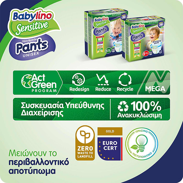 BABYLINO óôçí êáôçãïñßá ÐÁÍÅÓ ÌÙÑÏÕ Ïé ðÜíåò-âñáêÜêé Babylino Sensitive Pants óõíäõÜæïõí áðïôåëåóìáôéêÞ ðñïóôáóßá, Üíåóç êáé ðéóôïðïéçìÝíç öéëéêüôçôá óôï äÝñìá.