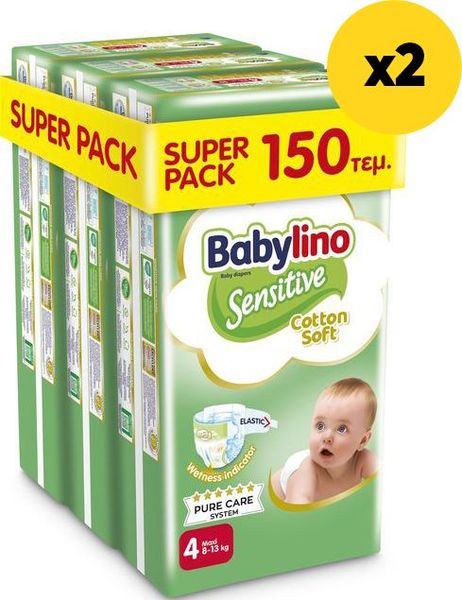ΠΑΝΕΣ BABYLINO SENSITIVE COTTON SOFT SUPER PACK N4 8-13KG/ 150ΤΕΜ X2 (ANA.PNS0776)