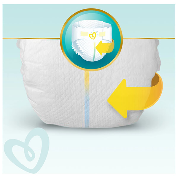 Πάνες ειδικά σχεδιασμένες για την επιδερμίδα του μωρού σας, με μεταξένια απαλότητα και 3 κανάλια, που απορροφούν την υγρασία γρήγορα, αφήνοντας την επιδερμίδα στεγνή. Η πάνα διαθέτει δείκτη υγρασίας που αλλάζει χρώμα και σας λέει πότε χρειάζεται αλλαγή το μωρό σας. Χαρίζει ακόμα πιο απαλή αίσθηση στο δερματάκι του μωρού, απομακρύνοντας την υγρασία. Με απαλά σαν πούπουλο υλικά, που αγκαλιάζουν ανάλαφρα τη βρεφική επιδερμίδα. Προστατεύει την ευαίσθητη κοιλίτσα του μωρού σας, χάρη στο περίγραμμα που εφαρμόζει τέλεια. Είναι απαλές και ελαστικές περιμετρικά, για απόλυτη άνεση. Αξεπέραστη στεγνότητα με υλικά που αναπνέουν, και προστασία έως και 12 ώρες. Με τον δείκτη υγρασίας σας ειδοποιεί για πιθανή ανάγκη αλλαγής της πάνας.