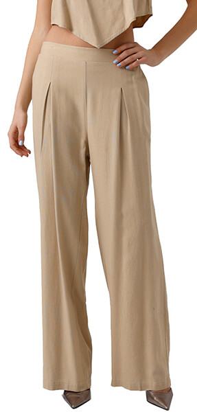Διαθέτει ελαστική μέση, πλάγιες τσέπες και κουφοπιέτες στο μπροστινό μέρος.