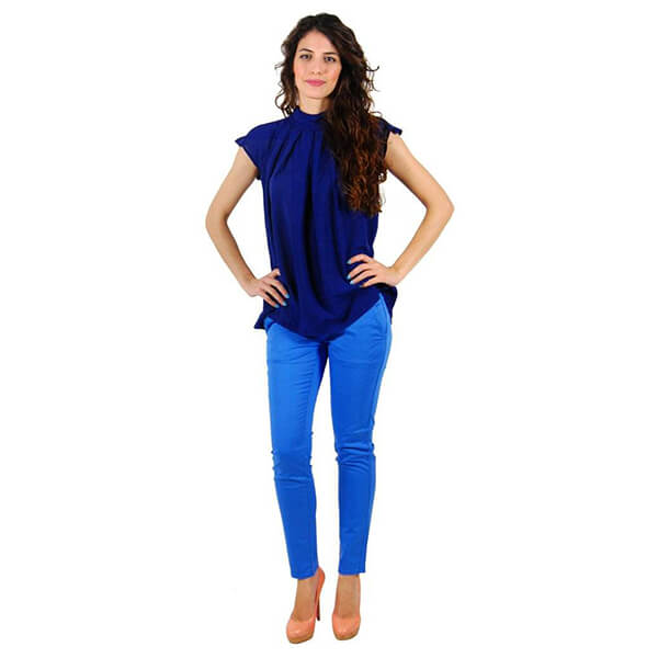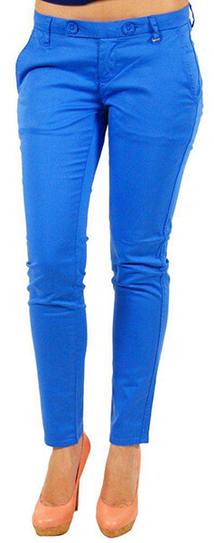 Παντελόνι Gas σε έντονο μπλε χρώμα. Έχει στενή γραμμή και διαθέτει δυο πλαϊνές τσέπες στο μπροστινό μέρος και δύο κοφτές πίσω. Κλείνει με φερμουάρ και κουμπιά και έχει θηλάκια για ζώνη κανονικού μεγέθους.