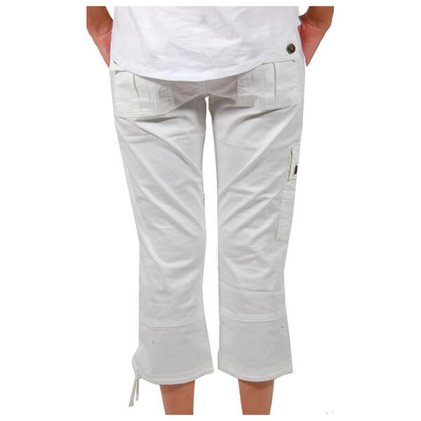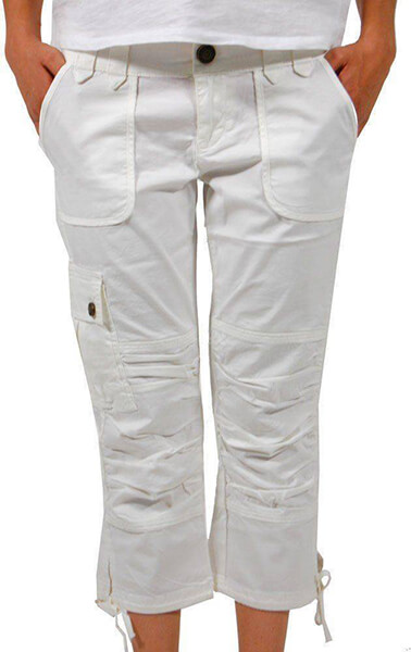 Jlo capri σε βανίλια χρώμα. Είναι σε στενή γραμμή και έχει δύο τσέπες στην μπροστινή πλεύρα στο πάνω μέρος, μια στο δεξί γόνατο και δύο τεράγωνες τσέπες πίσω.