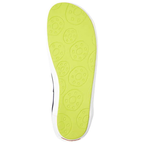 Με σόλα από καουτσούκ σε λευκό χρώμα περιμετρικά και αντιολισθητική επιφάνεια σε λαχανί χρώμα.