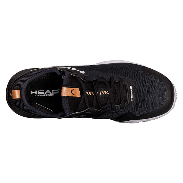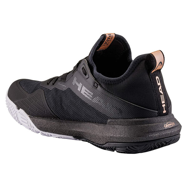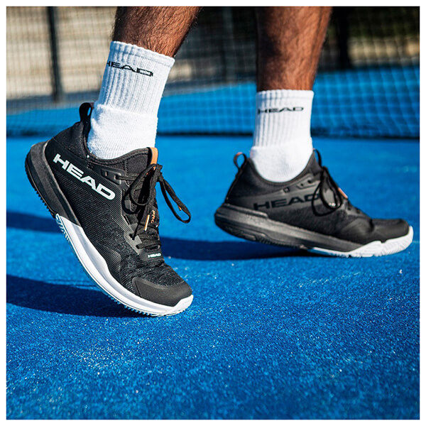 Ένα βελτιωμένο μοτίβο σόλας - δοκιμασμένο σε συνεργασία με την εταιρεία MONDO που επισήμως παρέχει τον τεχνητό χλοοτάπτητα στα γήπεδα του Παγκοσμίου Τουρνουά Padel (WPT) - ενισχύει την πρόσφυση προς όλες τις κατευθύνσεις. Για εξαιρετική άνεση, το παπούτσι διαθέτει ελαστική εσωτερική επένδυση ενώ η ενδιάμεση σόλα περιέχει αφρώδες υλικό DynaFoam, με μικρές κυψελίδες αέρα για ανάλαφρη αντικραδασμική προστασία και αναπήδηση. Η σταθερότητα προέρχεται από το συνδυασμό επένδυσης TPU στο κουντεπιέ, το ενισχυμένο πάνω μέρος και την τεχνολογία Lateral Control στα πλαϊνά. Για να διατηρηθεί το πόδι δροσερό, το MOTION PRO PADEL διαθέτει αεριζόμενο πλέγμα στο πάνω μέρος. Το έντονο σχέδιο με το μεγάλο λογότυπο HEAD προσθέτει στη μοντέρνα αισθητική του παπουτσιού.