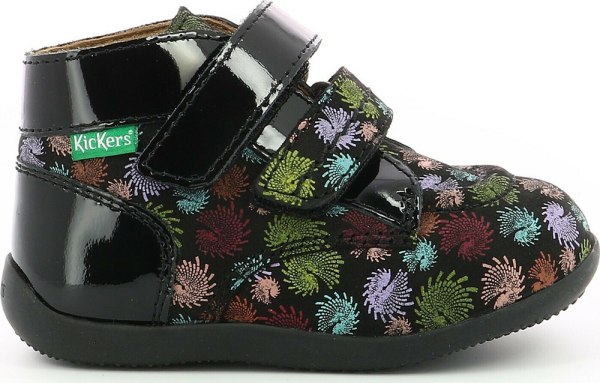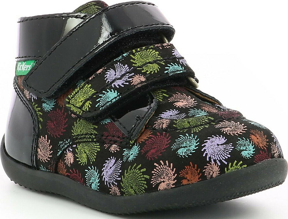 Δερμάτινα μποτάκια σε μαύρο χρώμα, διακοσμημένα με πολύχρωμο μοτίβο από πυροτεχνήματα. Ευκολοφόρετα παπούτσια για απεριόριστους συνδυασμούς!