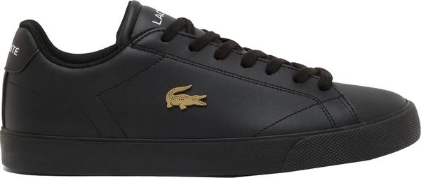 Lacoste σε μαύρο χρώμα με λευκές και χρυσές λεπτομέρειες.
