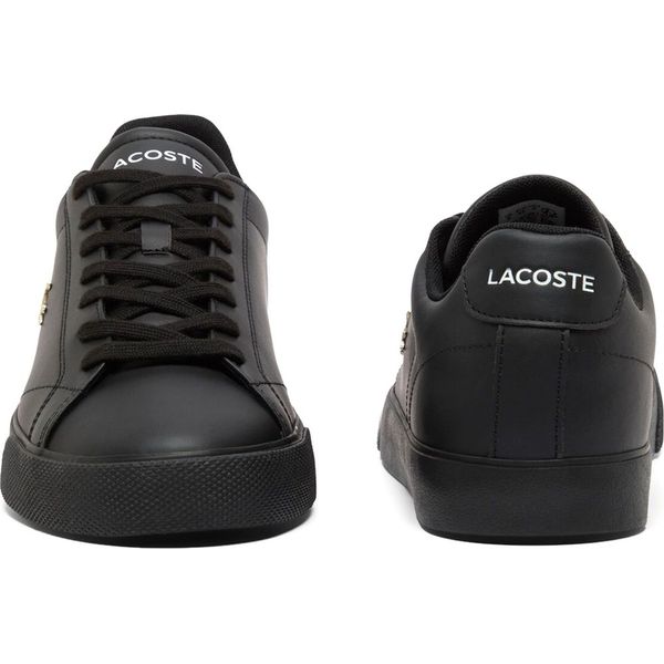 Lacoste σε μαύρο χρώμα με λευκές και χρυσές λεπτομέρειες.