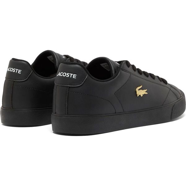 Lacoste σε μαύρο χρώμα με λευκές και χρυσές λεπτομέρειες.