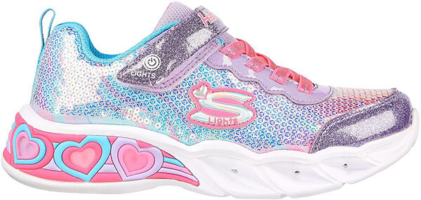 Πολύχρωμες καρδιές και ολήμερη άνεση συνδυάζονται στο παπούτσι Skechers Sweetheart Lights - Let's Shine. Αυτό το ανάλαφρο και ευκολοφόρετο sneaker με συνθετικό πάνω μέρος εμπλουτισμένο με παγιέτες και glitter, ενδιάμεση σόλα που φωτίζει και πολύχρωμες καρδούλες στη σόλα, θα προσφέρει στα παιδιά ατέλεωτες ώρες παιχνιδιού και διασκέδασης. Τα μεγαλύτερα μεγέθη διαθέτουν διακόπτη on/off!
