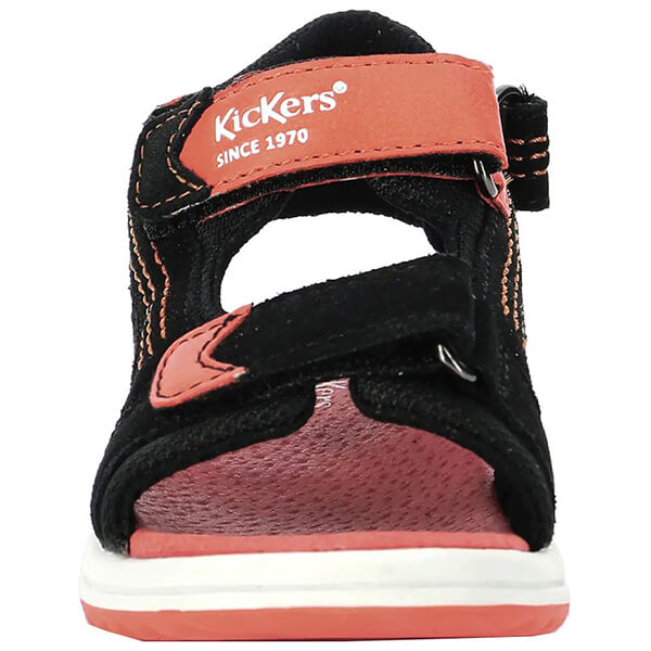 Παιδικά πέδιλα της μάρκας Kickers σε μαύρο χρώμα με ροδακινί λεπτομέρειες.