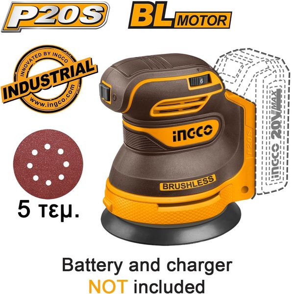 ΠΕΡΙΣΤΡΟΦΙΚΟ ΤΡΙΒΕΙΟ ΧΟΥΦΤΑΣ 125MM ΜΠΑΤΑΡΙΑΣ 20V LI-ION SOLO INGCO CROSLI2002 (TLS.391720)