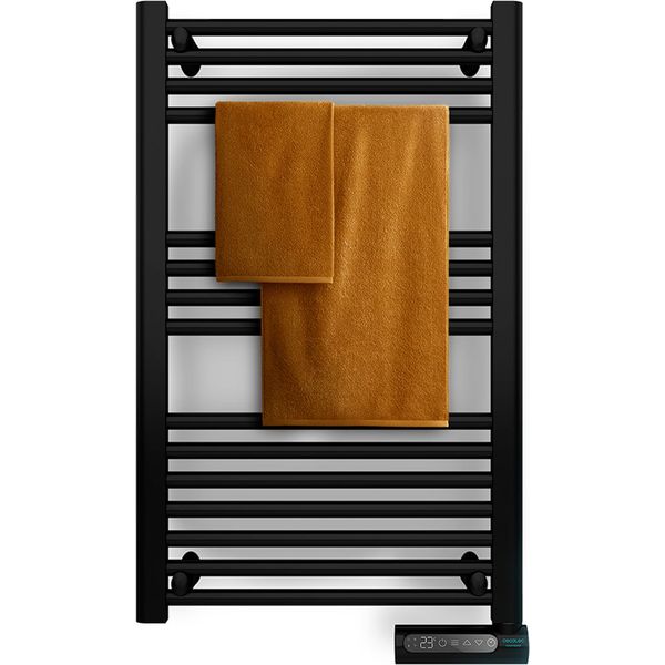 Ηλεκτρική πετσετοκρεμάστρα μπάνιου 500 W, από τη Cecotec! Διαθέτει LED οθόνη αφής με ένδειξη της τρέχουσας θερμοκρασίας του χώρου, καθώς και δυνατότητα ρύθμισης του επιθυμητού προγράμματος (Comfort, Eco, Open Window), του επιπέδου θερμοκρασίας (από 10°C έως 35°C) και του διαστήματος λειτουργίας της συσκευής (εβδομαδιαίος χρονοδιακόπτης). Είναι ιδανική για τοποθέτηση σε μπάνια ή χώρους έως και 5 m², ενώ είναι εξοπλισμένη με διπλό σύστημα προστασίας από την υπερθέρμανση και τις χαμηλές θερμοκρασίες, παρέχοντας πλήρη ασφάλεια σε όποιον την επιλέξει.