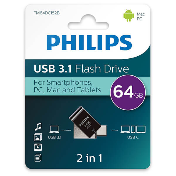 philips 2 in 1 64gb usb 31 type c otg flash drive midnight black fm64dc152b 00 photo