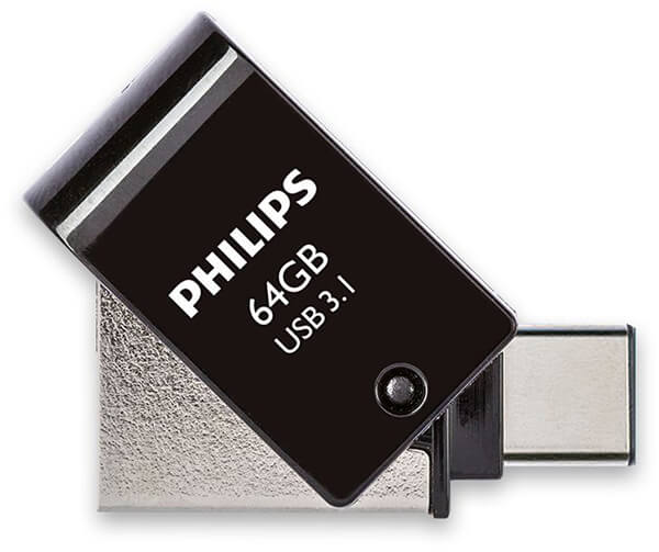 PHILIPS 2-IN-1 64GB USB 3.1 + TYPE-C OTG FLASH DRIVE MIDNIGHT BLACK FM64DC152B/00