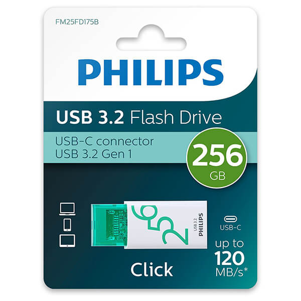 philips click series 256gb usb 32 type c flash drive otg spring green fm25fd175b 00 photo