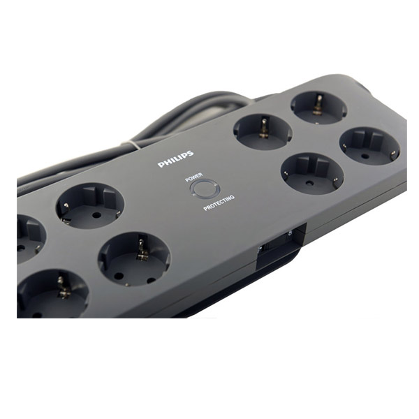Το πολύπριζο ασφαλείας είναι σχεδιασμένο για να τροφοδοτείτε με ασφάλεια τις σημαντικές συσκευές σας με ρεύμα. Τις προστατεύει από υπερτάσεις και άλλες ανωμαλίες του δικτύου του ρεύματος με το κύκλωμα Power Blocker. Μπορεί να παρέχει έως και 900 Joules. Η Philips σας εγγυάται ότι θα προστατέψει τις συσκευές που τροφοδοτείτε από αυτό το πολύπριζο ασφαλείας και σας παρέχει εγγύηση έως και 100.000 € για οποιαδήποτε ζημιά γίνει στις συσκευές σας από υπέρταση. Διαθέτει διακόπτη λειτουργίας, ώστε να αποσυνδέετε τις συσκευές σας από το ρεύμα με μια κίνηση και να εξοικονομείτε ρεύμα όταν δεν τις χρησιμοποιείτε.