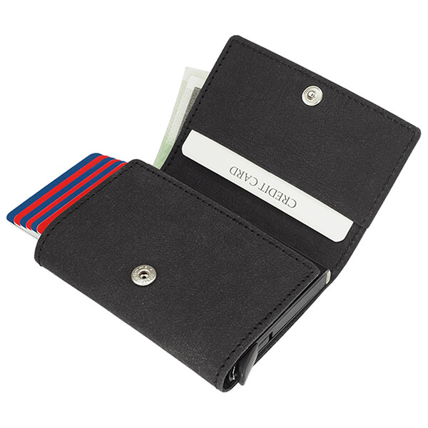 Πορτοφόλι Rfid για να αποφύγετε οποιαδήποτε αντιγραφή των δεδομένων της προσωπικής σας κάρτας από ανεπιθύμητους σαρωτές. Εκτός από τις κάρτες που χωράνε στην προστατευτική καρτοθήκη Cardprotector, το εσωτερικό διαθέτει χώρο για λίγες ακόμα κάρτες, χαρτονομίσματα, αποδείξεις, επαγγελματικές κάρτες. Είναι μικρό και μεταφέρεται εύκολα