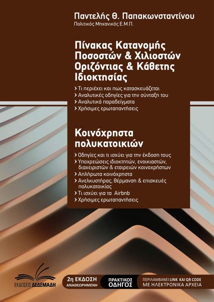 Αρχική > Βιβλία > Τεχνικές Εκδόσεις > ΠΙΝΑΚΑΣ ΚΑΤΑΝΟΜΗΣ ΠΟΣΟΣΤΩΝ ΚΑΙ ΧΙΛΙΟΣΤΩΝ ΟΡΙΖΟΝΤΙΑΣ ΚΑΙ ΚΑΘΕΤΗΣ ΙΔΙΟΚΤΗΣΙΑΣ+ΚΟΙΝΟΧΡΗΣΤΑ ΠΟΛΥΚΑΤΟΙΚΙΩΝ