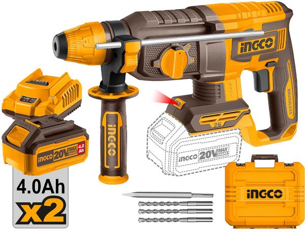 ΠΙΣΤΟΛΕΤΟ ΠΕΡΙΣΤΡΟΦΙΚΟ ΚΡΟΥΣΤΙΚΟ ΣΚΑΠΤΙΚΟ ΜΠΑΤΑΡΙΑΣ 20V LI-ION 2.5J INGCO CRHLI202682E