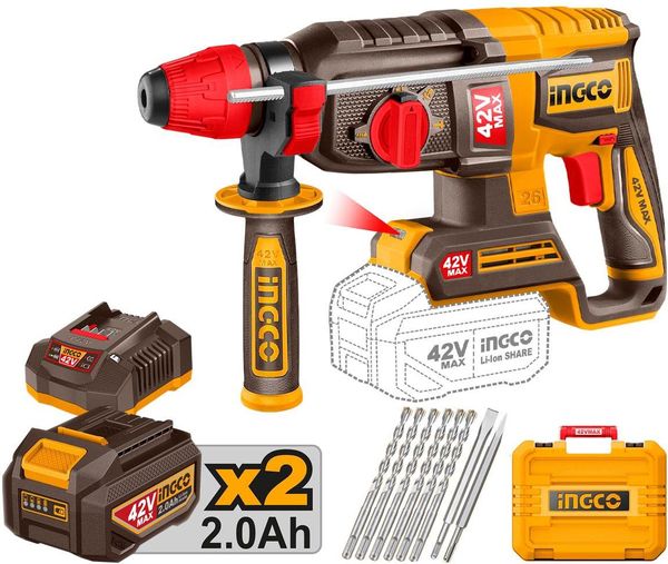 Αρχική > Εργαλεία > Δραπανοκατσάβιδα > ΠΙΣΤΟΛΕΤΟ ΠΕΡΙΣΤΡΟΦΙΚΟ ΚΡΟΥΣΤΙΚΟ ΣΚΑΠΤΙΚΟ ΜΠΑΤΑΡΙΑΣ 42V LI-ION 2.5J 26MM INGCO CRHLI422682E