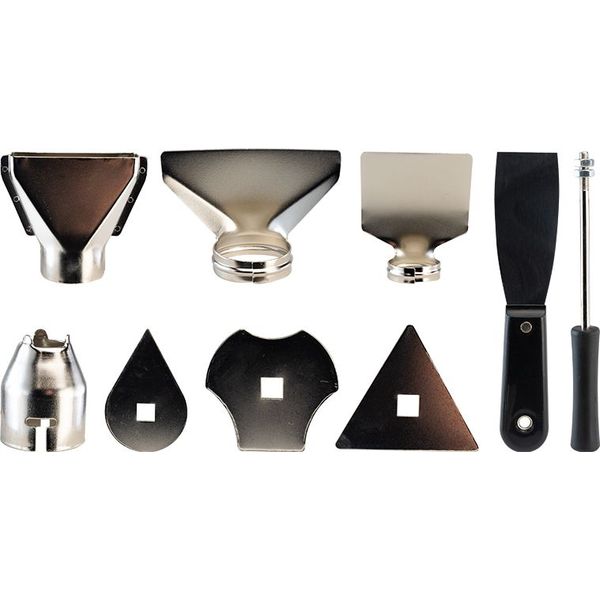 • Περιλαμβάνει: ακροφύσιο ανάκλασης, ξύστρα, κωνικό ακροφύσιο, ακροφύσιο προστασίας γυαλιού, ακροφύσιο επιφανείας