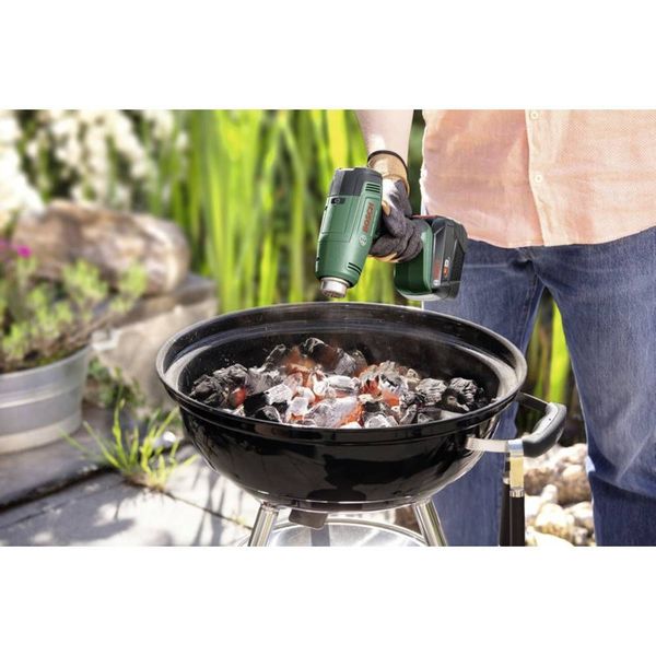 Άνετο και πολύ αποτελεσματικό, το πιστόλι θερμού αέρα EasyHeat 18V-500 είναι ιδανικό για ελαφριές εργασίες ερασιτεχνικές, όπως συρρίκνωση καλωδίων ή αφαίρεση κολλημένων ετικετών. Συνδυάζει αυτονομία χωρίς καλώδιο με μια πολύπλευρη απόδοση θερμού αέρα. Πολλά βασικά χαρακτηριστικά κάνουν αυτό το εύχρηστο πιστόλι θερμού αέρα να ξεχωρίζει: Η τεχνολογία πηνίου θέρμανσης εξασφαλίζει ομοιόμορφη κατανομή θερμότητας σε στοχευμένες περιοχές για καλύτερο έλεγχο και εξαιρετικά αποτελέσματα. Με σταθερή ισχύ, οι θερμοκρασίες διατηρούνται σε σταθερό επίπεδο. Η λειτουργία Boost ενισχύει τις θερμοκρασίες – Iδανική για το άναμμα κάρβουνων ή για άλλες εργασίες υψηλής θερμοκρασίας. Αυτό το πιστόλι θερμού αέρα διαθέτει μια λαστιχένια πίσω πλευρά για ασφαλή και σταθερή εναπόθεση σε όρθια θέση και είναι συμβατό με όλα τα στάνταρ ακροφύσια για ερασιτεχνικές εργασίες της Bosch. Αυτό ανήκει στο σύστημα 18V POWER FOR ALL. Μια μπαταρία μπορεί να χρησιμοποιηθεί σε όλα τα εργαλεία 18V POWER FOR ALL.