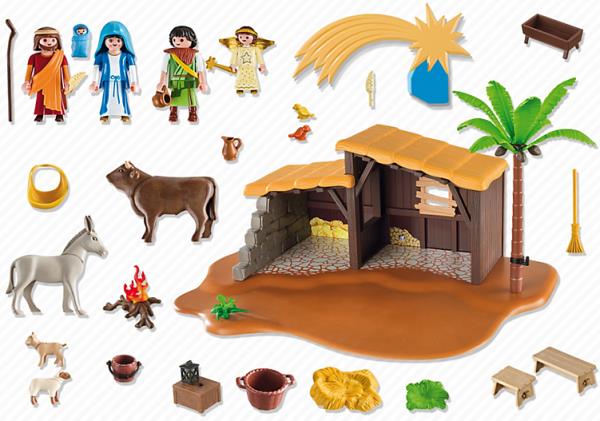 • Το σετ περιλαμβάνει πέντε φιγούρες, σκηνή, φανάρι, αρνί, φοίνικα, αστέρι που πέφτει, άχυρα, φωτιά, και άλλα αξεσουάρ.