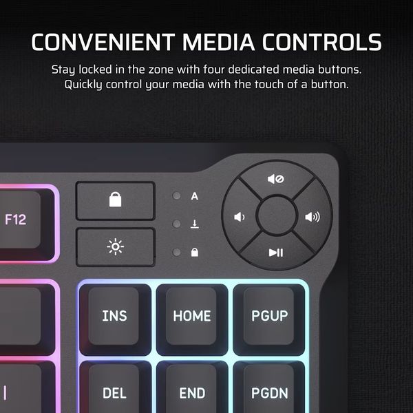 Το CORSAIR K55 CORE TKL RGB είναι ένα compact, tenkeyless gaming πληκτρολόγιο που προσφέρει άνεση, αθόρυβη λειτουργία και εντυπωσιακό RGB φωτισμό σε προσιτή τιμή. Με μεμβρανικούς διακόπτες που ανταποκρίνονται ομαλά, αποτελεί ιδανική λύση για gamers που θέλουν άνετο gaming και typing χωρίς τον θόρυβο των μηχανικών πλήκτρων. Η TKL διάταξη αφήνει περισσότερο χώρο για το ποντίκι, δίνοντάς σου μεγαλύτερη ελευθερία κινήσεων σε ανταγωνιστικά παιχνίδια. Με ρυθμό απόκρισης 1000Hz και 12-key rollover, καταγράφει άμεσα τις εντολές σου για ακριβή και γρήγορη απόδοση. Το πληκτρολόγιο είναι επίσης ανθεκτικό σε υγρά έως 300ml, ώστε να συνεχίζεις το παιχνίδι χωρίς άγχος σε μικρά ατυχήματα. Το CORSAIR iCUE προσφέρει βαθύ customization του RGB και των λειτουργιών, ενώ τα ειδικά πλήκτρα για media και WIN lock βελτιώνουν την άνεση και τον έλεγχο κατά τη χρήση.