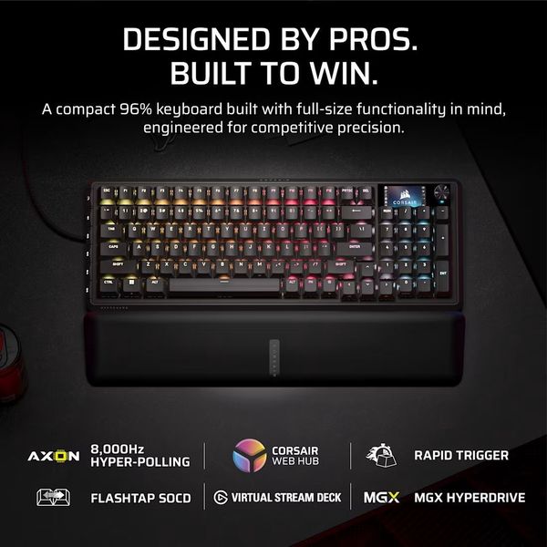 Τύπος: Gaming πληκτρολόγιο με μεμβρανικούς διακόπτες. Διάταξη: Tenkeyless (χωρίς αριθμητικό). Φωτισμός: RGB με υποστήριξη CORSAIR iCUE. Ρυθμός απόκρισης: 1000Hz. Key Rollover: 12-Key Selective (12KRO). Αντοχή σε υγρά: Έως 300ml. Συνδεσιμότητα: Ενσύρματο μέσω USB 2.0 Type-A. Έλεγχος media: Αφιερωμένα πλήκτρα media & volume. WIN Lock: Πλήκτρο αποκλεισμού για αποφυγή ατυχημάτων. Μνήμη: Ενσωματωμένη για αποθήκευση ρυθμίσεων. Συμβατότητα: Windows 10, macOS 10.15. Βάρος: 0.843 kg. Χρώμα: RGB Black. Εγγύηση: 2 Χρόνια. DOA 7 ημερών