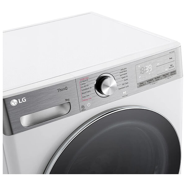 Πλυντήριο Ρούχων της LG χωρητικότητας 9 kg και ενεργειακής απόδοσης Α. Διαθέτει έξυπνη φροντίδα (AI DD) η οποία προσφέρει 18% μεγαλύτερη προστασία ρούχου. Υποστηρίζει σύνδεση Wi-Fi. -Το πλυντήριο πετυχαίνει το τριπλό ''Α'', στις κατηγορίες της ενεργειακής απόδοσης, απόδοσης στυψίματος και ακουστικού θορύβου. -Βασισμένο σε έναν μεγάλο όγκο δεδομένων συσσωρευμένης εμπειρίας πλύσεων, το AI DD παρέχει την βέλτιστη κίνηση πλύσης για την καλύτερη φροντίδα των ρούχων σας. -Το AI DD ανιχνεύει όχι μόνο το βάρος, αλλά και την απαλότητα του υφάσματος, και επιλέγει αυτόματα τις βέλτιστες κινήσεις για το ύφασμα. -Το TurboWash 360? δίνει τη δυνατότητα να πλένετε τα ρούχα σας κανονικά σε μόλις 39 λεπτά, παρέχοντας ακόμα μεγαλύτερη προστασία στα υφάσματα. Ο ψεκασμός από τα 3D πολλαπλά ακροφύσια 4 κατευθύνσεων φθάνει σε κάθε σημείο των ρούχων σας. -Με την τεχνολογία LG Steam εξαλείφεται το 99,9% των αλλεργιογόνων, όπως τα ακάρεα σκόνης που μπορούν να προκαλέσουν αλλεργίες ή αναπνευστικά προβλήματα. -Κομψή πόρτα από ανθεκτικό, ενισχυμένο γυαλί και ανθεκτικό ανυψωτικό κάδου από ανοξείδωτο χάλυβα που πληροί τα απαραίτητα επίπεδα υγιεινής. -Χάρη στην τεχνολογία LG ThinQ, μπορείτε να ελέγχετε το πλυντήριό σας από απόσταση και να κατεβάζετε πρόσθετα προγράμματα πλύσης από την εφαρμογή. Μπορείτε εύκολα να συνδεθείτε στη συσκευή μέσω Wi-Fi και να αποκτήσετε πρόσβαση στις πιο ενημερωμένες εξελίξεις.