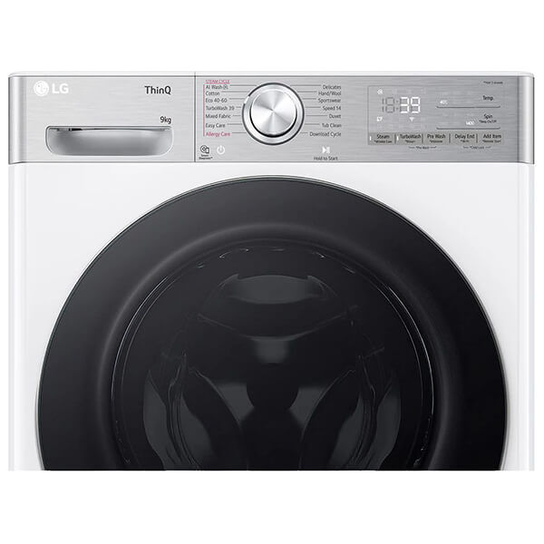 Πλυντήριο Ρούχων της LG χωρητικότητας 9 kg και ενεργειακής απόδοσης Α. Διαθέτει έξυπνη φροντίδα (AI DD) η οποία προσφέρει 18% μεγαλύτερη προστασία ρούχου. Υποστηρίζει σύνδεση Wi-Fi. -Το πλυντήριο πετυχαίνει το τριπλό ''Α'', στις κατηγορίες της ενεργειακής απόδοσης, απόδοσης στυψίματος και ακουστικού θορύβου. -Βασισμένο σε έναν μεγάλο όγκο δεδομένων συσσωρευμένης εμπειρίας πλύσεων, το AI DD παρέχει την βέλτιστη κίνηση πλύσης για την καλύτερη φροντίδα των ρούχων σας. -Το AI DD ανιχνεύει όχι μόνο το βάρος, αλλά και την απαλότητα του υφάσματος, και επιλέγει αυτόματα τις βέλτιστες κινήσεις για το ύφασμα. -Το TurboWash 360? δίνει τη δυνατότητα να πλένετε τα ρούχα σας κανονικά σε μόλις 39 λεπτά, παρέχοντας ακόμα μεγαλύτερη προστασία στα υφάσματα. Ο ψεκασμός από τα 3D πολλαπλά ακροφύσια 4 κατευθύνσεων φθάνει σε κάθε σημείο των ρούχων σας. -Με την τεχνολογία LG Steam εξαλείφεται το 99, 9% των αλλεργιογόνων, όπως τα ακάρεα σκόνης που μπορούν να προκαλέσουν αλλεργίες ή αναπνευστικά προβλήματα. -Κομψή πόρτα από ανθεκτικό, ενισχυμένο γυαλί και ανθεκτικό ανυψωτικό κάδου από ανοξείδωτο χάλυβα που πληροί τα απαραίτητα επίπεδα υγιεινής. -Χάρη στην τεχνολογία LG ThinQ, μπορείτε να ελέγχετε το πλυντήριό σας από απόσταση και να κατεβάζετε πρόσθετα προγράμματα πλύσης από την εφαρμογή. Μπορείτε εύκολα να συνδεθείτε στη συσκευή μέσω Wi-Fi και να αποκτήσετε πρόσβαση στις πιο ενημερωμένες εξελίξεις.