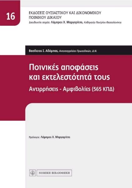 Με το έργο «Ποινικές αποφάσεις και εκτελεστότητά τους» προσεγγίζεται από τον συγγραφέα μία επιμέρους θεματική του δικαίου εκτελέσεως ποινικών αποφάσεων, ήτοι των αμφιβολιών ή αντιρρήσεων σχετικά με την εκτελεστότητα της αποφάσεως και το είδος ή τη διάρκεια της ποινής (: άρθρο 565 ΚΠΔ). Πρόκειται για αντικείμενο όχι μόνο θεωρητικά ελκυστικό, αλλά κυρίως πρακτικό, γεγονός που αποδεικνύεται μέσα από τη (σχεδόν) καθημερινή επαφή της νομολογίας με αυτό. Ειδικότερα, η ερμηνευτική προσέγγιση των προβλέψεων του άρθρου 565 ΚΠΔ υπακούει στην ακόλουθη συστηματική πορεία.