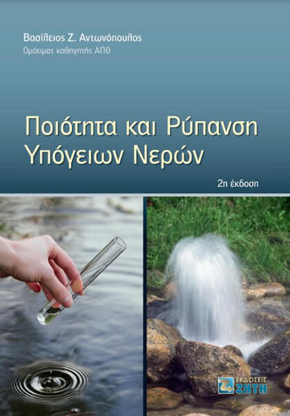 ISBN: 978-960-456-567-2 Συγγραφέας: ΑΝΤΩΝΟΠΟΥΛΟΣ ΒΑΣΙΛΕΙΟΣΣ Εκδοτικός οίκος: ΖΗΤΗ Σελίδες: 392 Διαστάσεις: 17Χ24 Ημερομηνία Έκδοσης: Δεκέμβριος 2021 Στο βιβλίο περιγράφονται τα προβλήματα ποιότητας των υπόγειων νερών, οι πηγές ρύπανσης, οι διαδικασίες με τις οποίες οι ρύποι φτάνουν στα υπόγεια νερά και μεταφέρονται στην ακόρεστη ζώνη του εδάφους και στους υπόγειους υδροφορείς και οι μέθοδοι αποκατάστασης ρυπασμένων υδροφορέων. Η ύλη του βιβλίου αναπτύσσεται σε εννέα κεφάλαια. Περιλαμβάνονται και περιγράφονται: Οι βασικές αρχές της ποιότητας των υπόγειων νερών, οι πηγές ρύπανσης, οι επιπτώσεις της ρύπανσης στο περιβάλλον και η μακροσκοπική ανάλυση των διαδικασιών ρύπανσης.Τα φαινόμενα μεταφοράς μάζας των ουσιών και οι εξισώσεις που περιλαμβάνουν τη διασπορά, τη μετακίνηση με το νερό, την προσρόφηση, τους μετασχηματισμούς των ουσιών και το διπλό πορώδες του εδάφους.Αναλυτικές λύσεις για απλά προβλήματα και αριθμητικές λύσεις για πιο σύνθετα προβλήματα.Οι μέθοδοι εφαρμογής υγρών αποβλήτων στο έδαφος (φυσικά συστήματα) και τα προβλήματά τους.To άζωτο, ο φώσφορος, τα φυτοφάρμακα και τα άλατα στο εδαφικό και υπόγειο νερό και η επικινδυνότητα ρύπανσης των υπόγειων νερών.Σύγχρονες μέθοδοι και τεχνικές εξυγίανσης και αποκατάστασης ρυπασμένων υπόγειων υδροφορέων και οι μέθοδοι και οι διαδικασίες δειγματοληψίας και παρακολούθησης της ποιότητας του νερού στην ακόρεστη ζώνη του εδάφους και στους υπόγειους υδροφορείς. Το βιβλίο αποτελεί απαραίτητο εργαλείο και πολύτιμη πηγή γνώσεων για τους επιστήμονες και μηχανικούς που ασχολούνται και ενδιαφέρονται για τη διαχείριση των υδατικών πόρων, αλλά και διδακτικό βοήθημα για φοιτητές γεωπονικών, πολυτεχνικών και άλλων επιστημονικών τμημάτων που περιλαμβάνουν στο πρόγραμμα σπουδών τους μαθήματα υδατικών πόρων, υδραυλικής και προστασίας περιβάλλοντος.