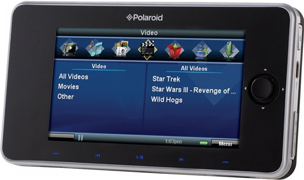 Δείτε τα αγαπημένα σας video και ταινίες, ακούστε τα αγαπημένα σας τραγούδια όπου και αν είστε. Με το νέο wifi portable video player της Polaroid, μπορείτε να δείτε video και να ακούσετε μουσική μέσω της ασύρματης επικοινωνίας, τεχνολογίας Wifi απλά κάνοντας μια σύνδεση με τον υπολογιστή σας. • Χωρητικότητα: 60Gb HDD (120 ώρες video, 400.000 φωτογραφίες, 15.000 τραγούδια). • Οθόνη: 4.3" TFT LCD 480 x 272 pixels. • Υποστήριξη Video: MPEG4, WMV. • Υποστήριξη Audio: MP3, WMA, WAV. • Υποστήριξη εικόνων: JPEG. • Διασύνδεση: USB 2.0. • Συνδέσεις: Wireless 802.11 B/G. • Πρόσθετα χαρακτηριστικά: TV out, FM tuner, δυνατότητα απευθίας συγχρονισμού με Microsoft Media Player. • Διάρκεια μπαταρίας: Αναπαραγωγή μουσικής 16h, Αναπαραγωγή Video 4h. • Πηγή ρεύματος: Εσωτερική (Lithium-Ion). • Διαστάσεις: 22(Μ) x 80(Β) x 144(Π) mm. • Περιεχόμενα συσκευασίας: Ακουστικά, USB Cable, AC adapter. • Εγγύηση: 1 χρόνος. DOA 7 ημερών