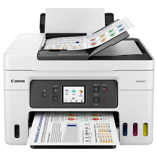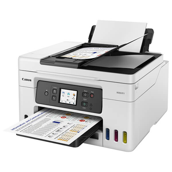 Πολυμηχάνημα της Canon με με επαναγεμιζόμενα μελάνια και δυνατότητες εκτύπωσης, σάρωσης, αντιγραφής και φαξ. Εκτυπώστε μεγάλους όγκους επαγγελματικών εγγράφων υψηλής ποιότητας, εξοικονομώντας παράλληλα πολλά χρήματα επί του κόστους ανά σελίδα και επί του συνολικού κόστους ιδιοκτησίας, χάρη σε αυτόν τον εύχρηστο εκτυπωτή 4 σε 1 MAXIFY GX με δυνατότητα αναπλήρωσης, σύστημα MegaTank, αυτόματο τροφοδότη εγγράφων, Wi-Fi και Ethernet. -Με ένα πλήρες σετ φιαλών μελανιού που παράγουν έως και 14.000 εκτυπώσεις, αυτός ο εκτυπωτής MegaTank υψηλής απόδοσης προσφέρει τεράστια εξοικονόμηση επί του συνολικού κόστους ιδιοκτησίας και επί του κόστους ανά σελίδα. Πρόκειται για μια έξυπνη επένδυση για οποιοδήποτε οικιακό γραφείο. -Με μικρές διαστάσεις, απλή συνδεσιμότητα και εύκολη πρόσβαση στην κασέτα συντήρησης με δυνατότητα αντικατάστασης από τον χρήστη, η σειρά MAXIFY GX αποτελεί την ιδανική επιλογή για εκτυπωτές μεγάλου όγκου και υψηλής απόδοσης για απαιτητικούς εργαζομένους, είτε δουλεύουν από το σπίτι είτε ακολουθούν ένα μοντέλο υβριδικής εργασίας. -Μειώστε το κόστος εκτυπώνοντας σε περισσότερα υλικά εντός της επιχείρησης. Δημιουργήστε ανθεκτικό υλικό υψηλής ποιότητας για σημεία πωλήσεων, σήμανση, αλλά και διαφημιστικά πανό και ετικέτες, χρησιμοποιώντας τον πίσω επίπεδο δίσκο, ο οποίος υποστηρίζει χαρτόνι μεγάλου πάχους. -Εκτυπώστε γρήγορα έγχρωμα διαφημιστικά έντυπα και φυλλάδια σε μεγάλους όγκους, διατηρώντας παράλληλα την εξαιρετική ποιότητα. Τα αποκλειστικά μελάνια τύπου pigment προσφέρουν φωτεινές, ευανάγνωστες εκτυπώσεις, οι οποίες είναι ανθεκτικές στις μουτζούρες και δεν θολώνουν. -Εκτυπώστε μεγάλες ποσότητες υλικών διδασκαλίας, έγχρωμων και ανθεκτικών φυλλαδίων και διοικητικών εγγράφων και, παράλληλα, εξοικονομήστε χρήματα από το κόστος των μελανιών. Μπορείτε να επιβλέπετε τα παιδιά στη μία αίθουσα, ενώ εκτυπώνετε σε μια άλλη, χρησιμοποιώντας την ασύρματη συνδεσιμότητα. -Εξοικονομήστε χρήματα κατά τη διάρκεια ζωής του εκτυπωτή, χάρη στις επαναγεμιζόμενες δεξαμενές μελανιού, οι οποίες μειώνουν σημαντικά το συνολικό κόστος ιδιοκτησίας και το κόστος ανά σελίδα. Ενισχύστε την απόδοση σελίδων με την κατάσταση Οικονομικής λειτουργίας και εκτυπώστε έως και 1,5x περισσότερες σελίδες με την ίδια ποσότητα μελανιού. -Απολαύστε εκτυπώσεις ανθεκτικές στο νερό, στην τριβή και στους μαρκαδόρους, κατάλληλες για επαγγελματική χρήση και με εξαιρετική αναγνωσιμότητα, που παρέχονται γρήγορα και σε μεγάλους όγκους. -Εκτυπώστε διαφημιστικά έντυπα, πανό και αφίσες εντός της επιχείρησής σας, χάρη στη συμβατότητα με μια μεγάλη ποικιλία υλικών, όπως μαγνητικά και φωτογραφικά υλικά εκτύπωσης. Επίσης, διαθέτει έναν νέο πίσω επίπεδο δίσκο που υποστηρίζει υλικά εκτύπωσης και κάρτες μεγαλύτερου πάχους. -Εκτυπώστε μεγάλους όγκους εγγράφων χωρίς την ενοχλητική διαδικασία της επανατοποθέτησης χαρτιού, χάρη στο πίσω συρτάρι τροφοδοσίας 100 φύλλων και στο μπροστινό συρτάρι τροφοδοσίας 250 φύλλων, για γρήγορο και εύκολο έλεγχο της ποσότητας του χαρτιού. Ο αυτόματος τροφοδότης εγγράφων 35 φύλλων απλοποιεί τη διαχείριση πολυσέλιδων εγγράφων.